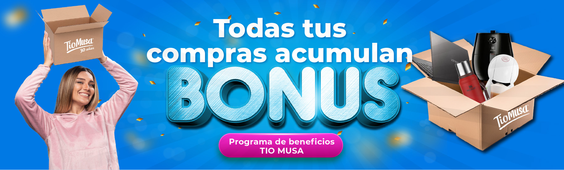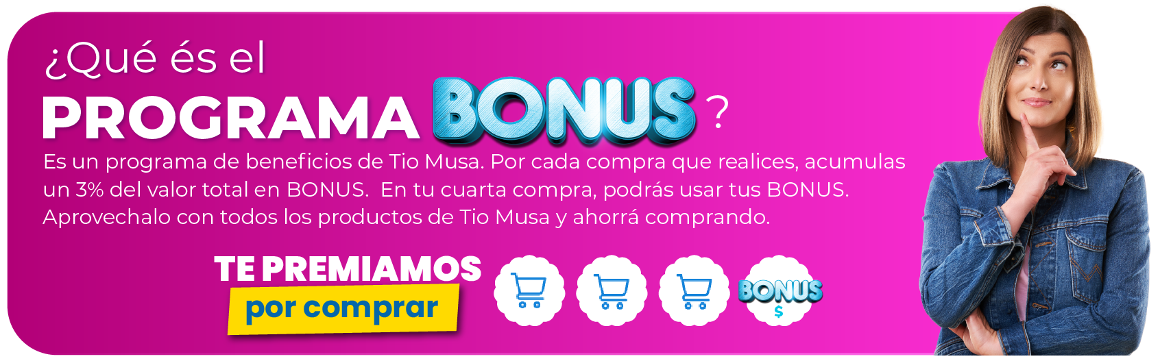 El usuario suma un 3% del valor de su compra en Bonus Tio Musa.