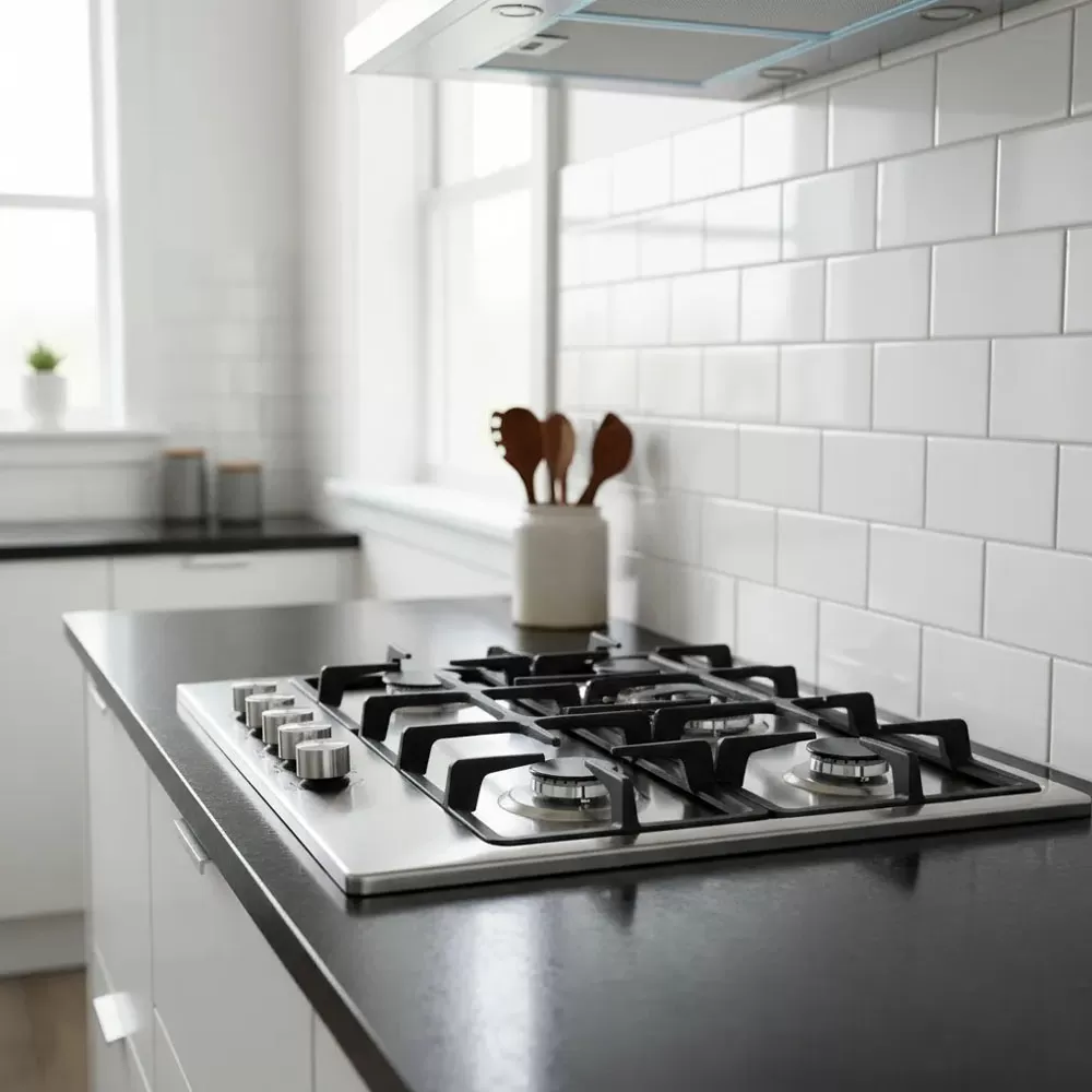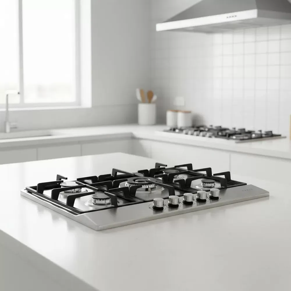 Anafe de embutir con 5 quemadores de alto rendimiento.