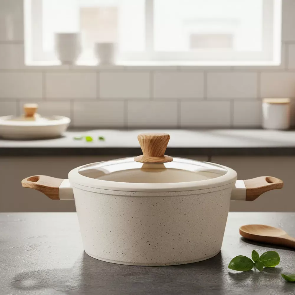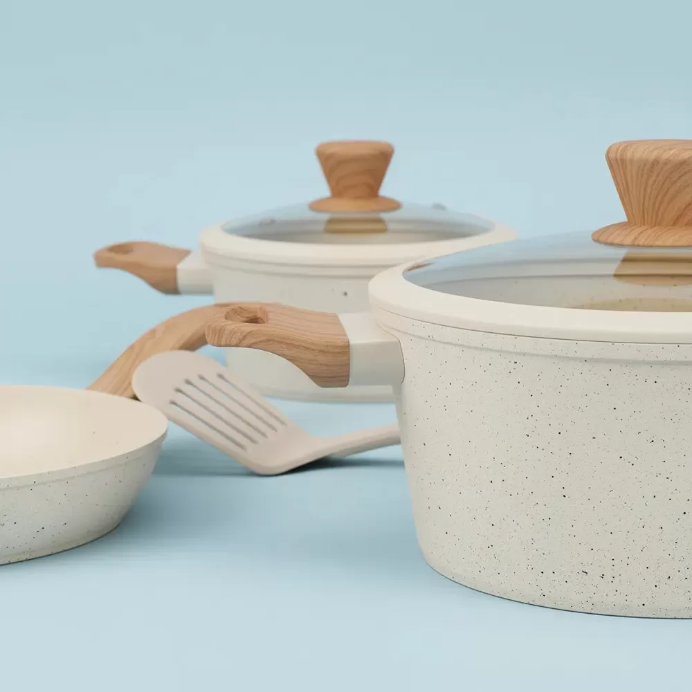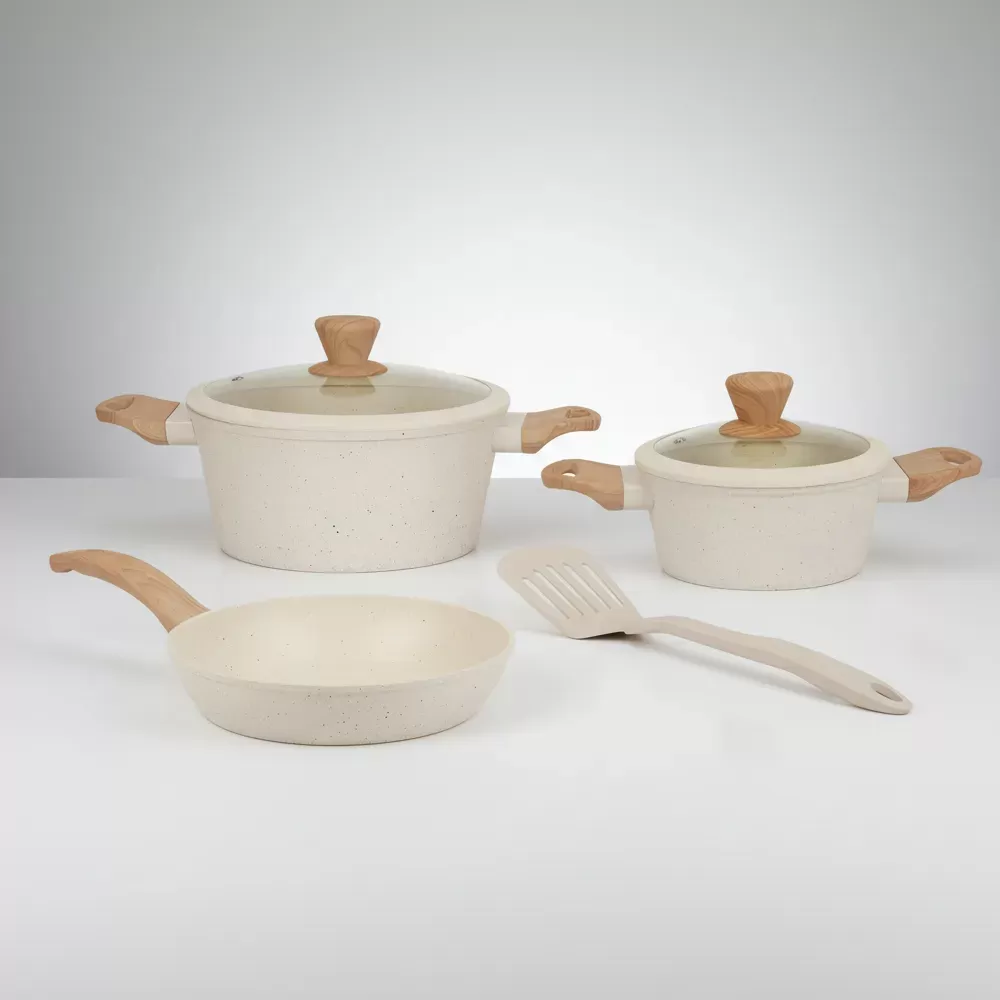 Bateria Cocina 6pzs Granito Inducción Cacerola Sarten Carol Beige