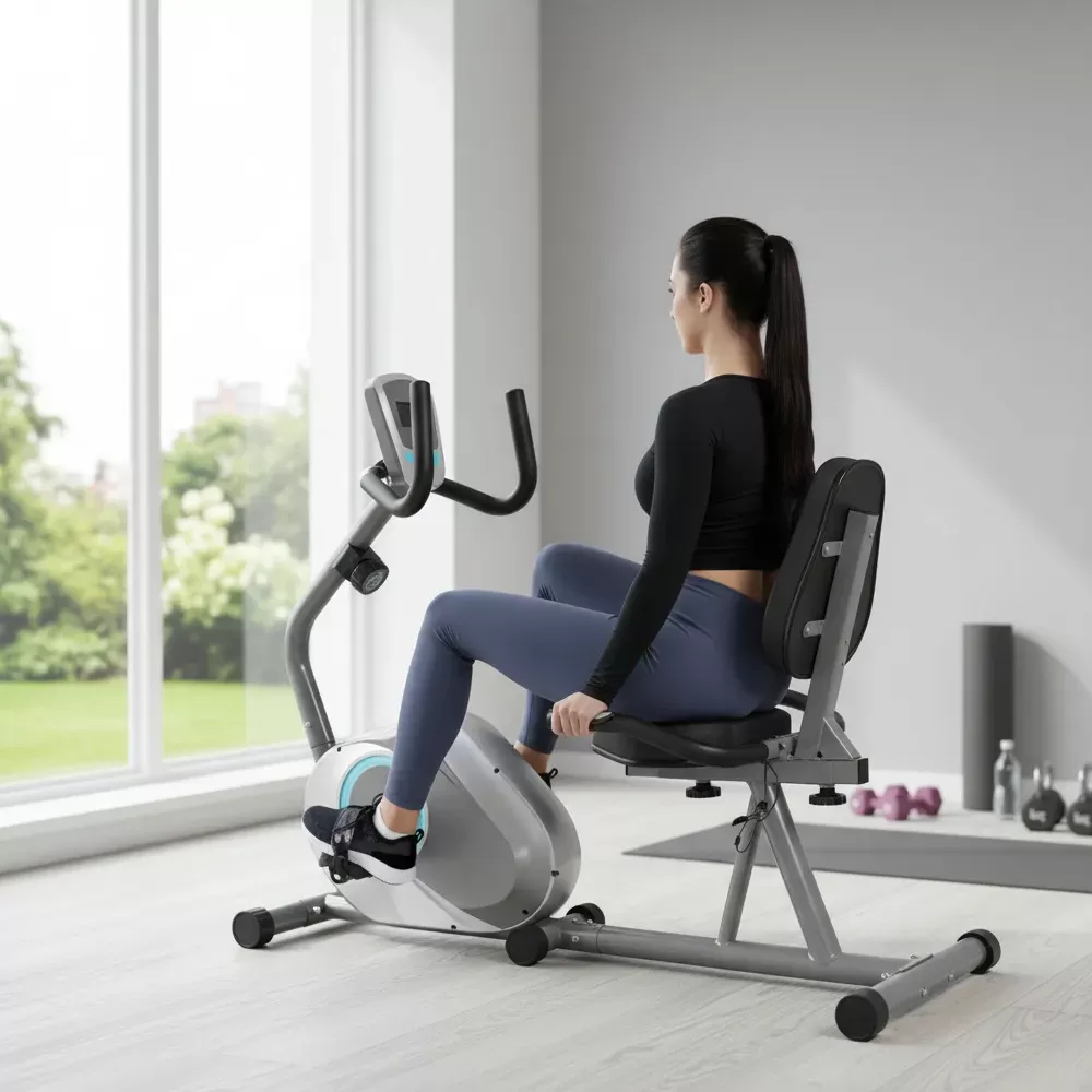 Los manillares ajustables de las bicicletas estáticas verticales le permiten andar en una postura perfecta.