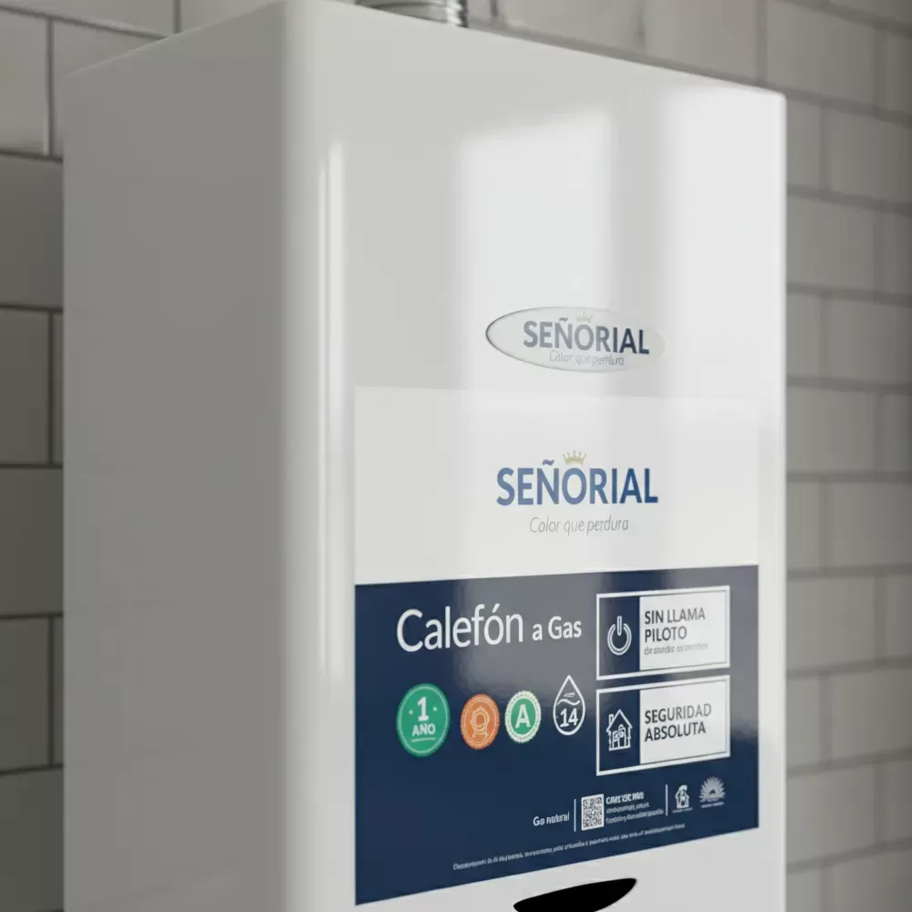 Este calefón de la reconocida marca Señorial es de origen argentino y está diseñado para ser duradero y eficiente. Con un peso de 51 kg y dimensiones compactas, se presenta en un embalaje adicional que protege el producto durante su transporte. Es una opción inteligente para quienes buscan calidad y responsabilidad energética en su hogar.