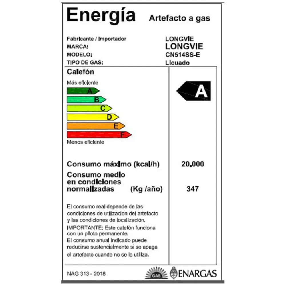 Calefón A Gas Tiro Natural De 14l Longvie Cn514ss Sin Piloto