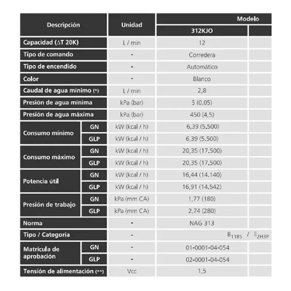 Calefon Tiro Natural Orbis 312kjo 12l Corredera Sin Piloto Blanco Gn