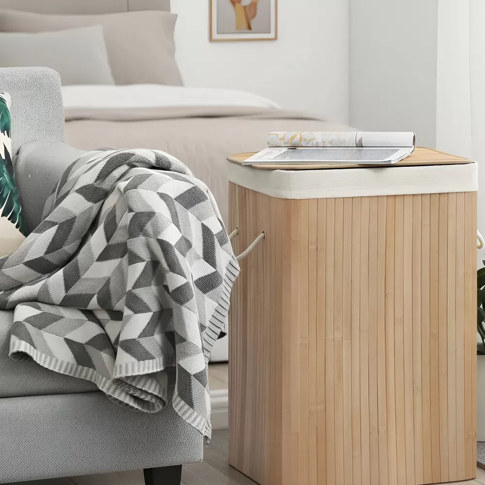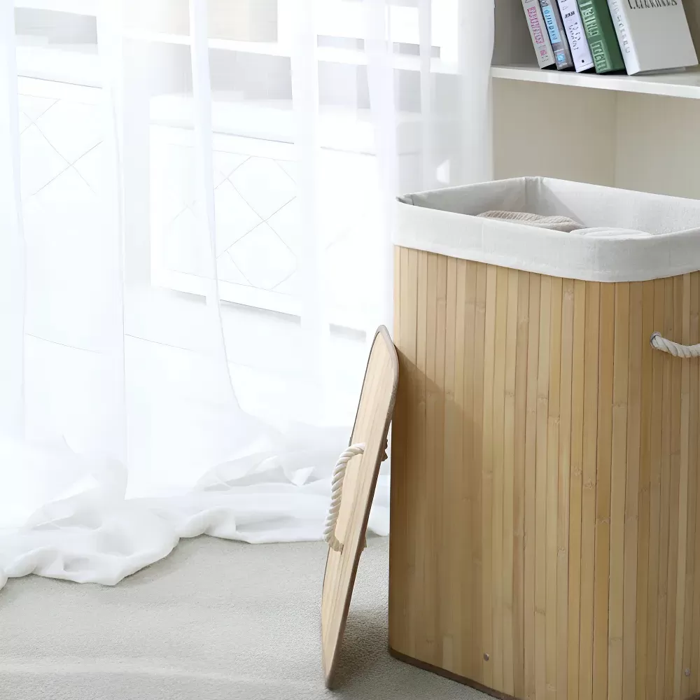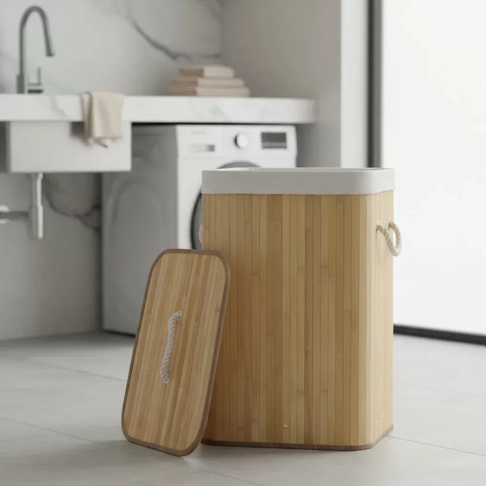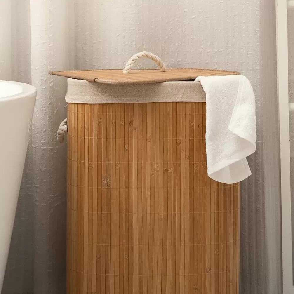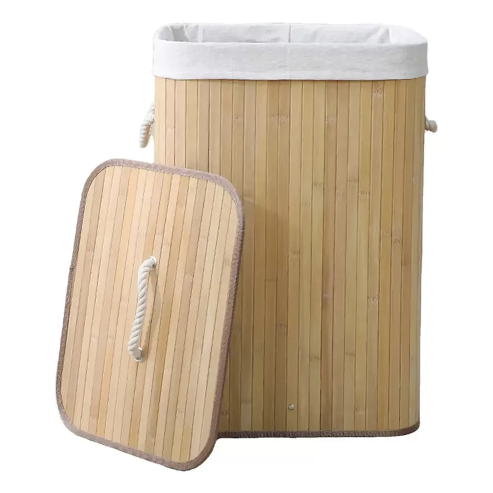 Canasto Cesto Ropa Sucia Tapa Bambu Con Asas Organizador Bambú Marrón