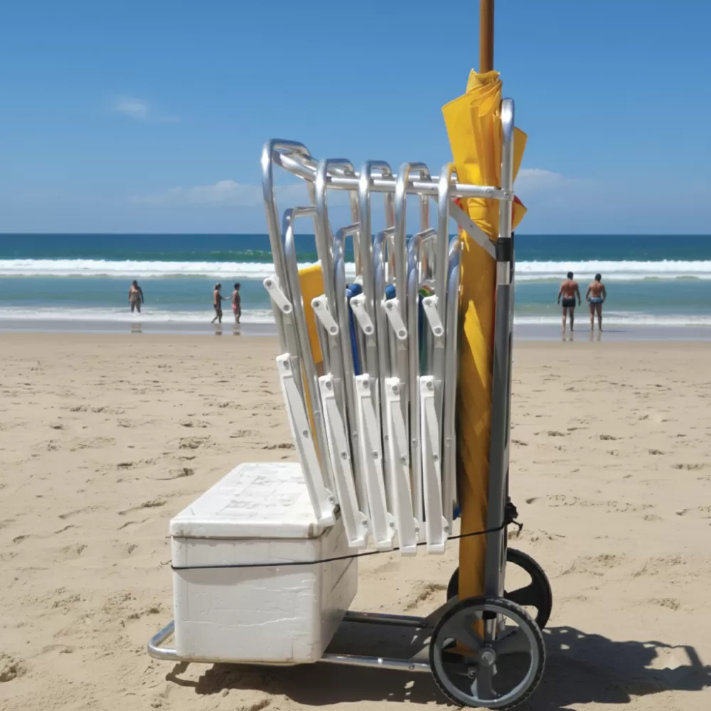 El carrito de mesa es ideal para transportar sillas de playa, sombrillas y otros objetos.