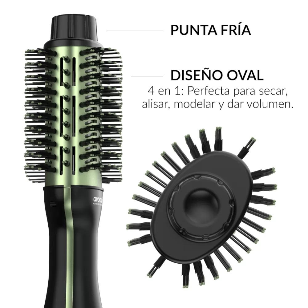 Tecnología Active Oil: Las cerdas y el cabezal están impregnados con aceite de palta (avocado) y macadamia. Esto ayuda a que el cepillo se deslice mejor y aporte un extra de brillo y nutrición durante el secado.