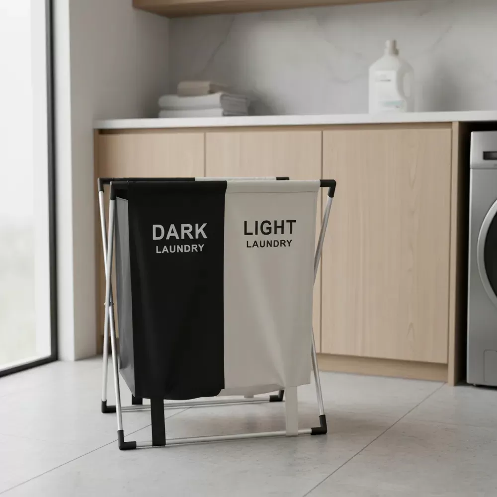 Cesto Canasto Doble Para Ropa Sucia Blanco Y Negro