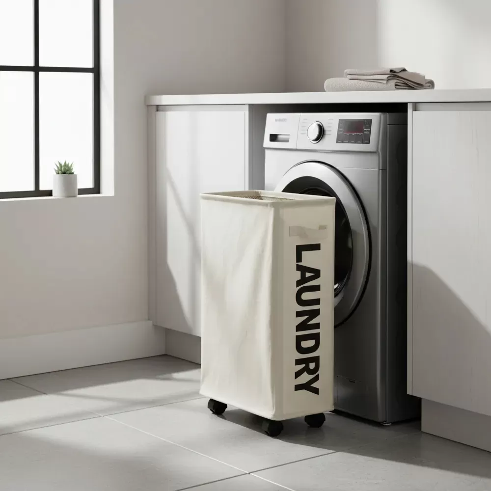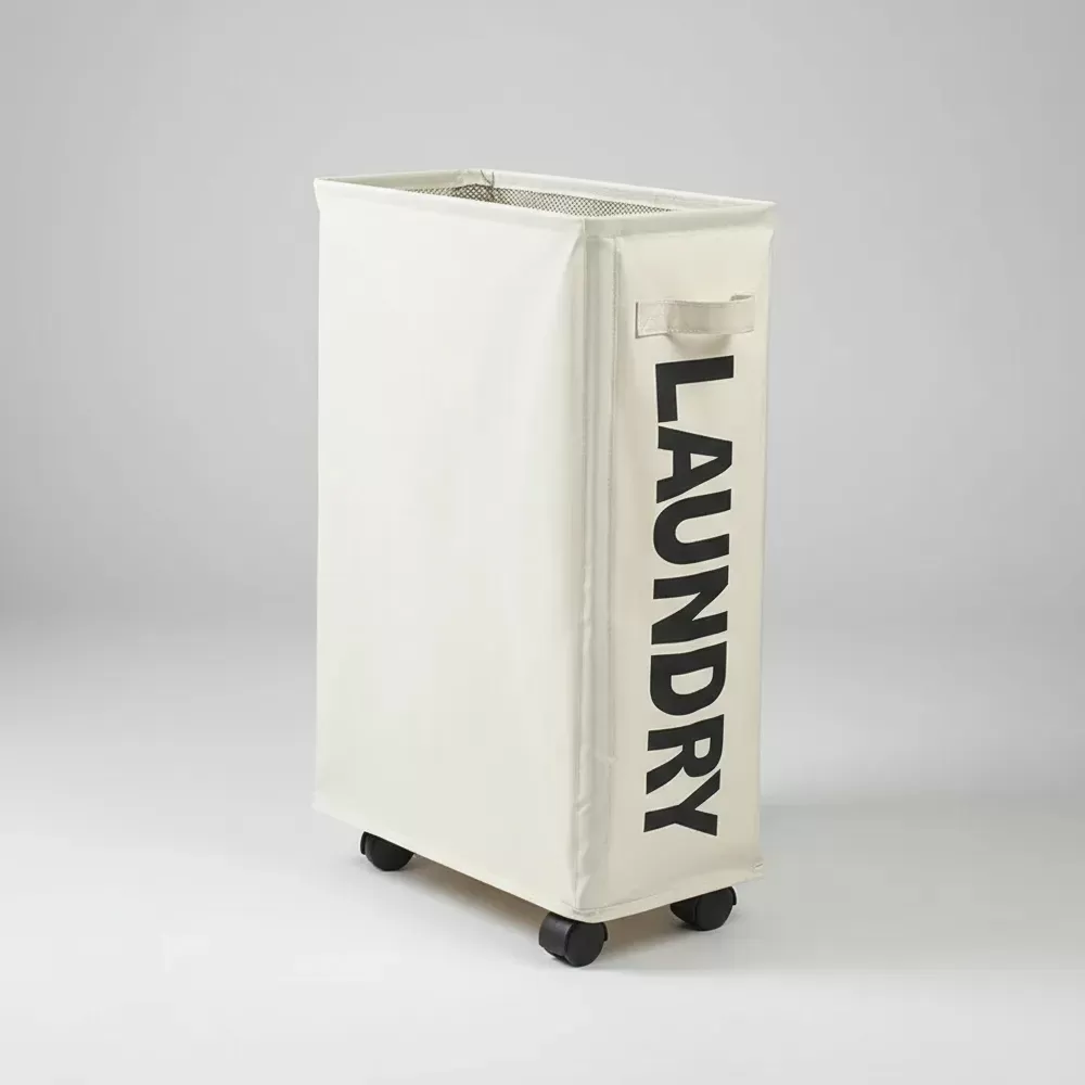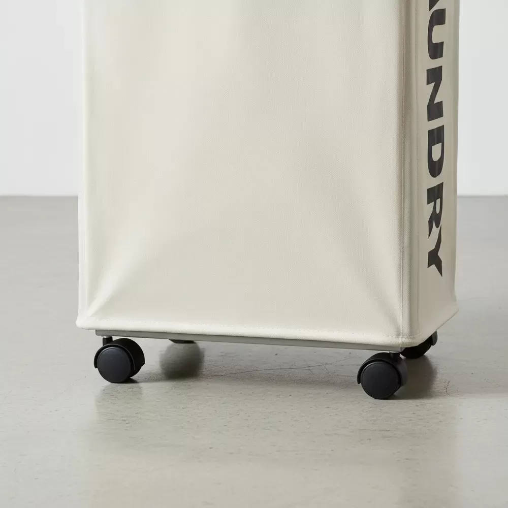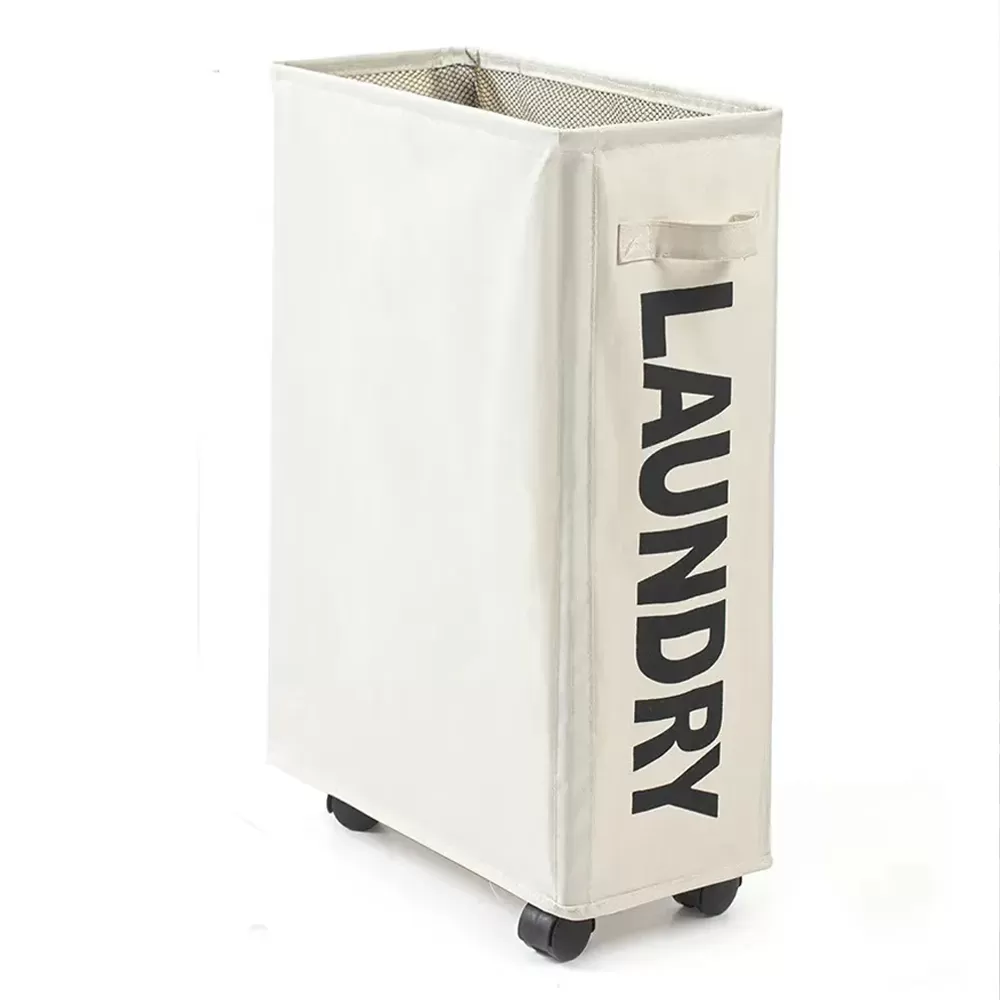 Cesto De Ropa Sucia Compacto Con Ruedas Rectángular Plegable Lisa Beige