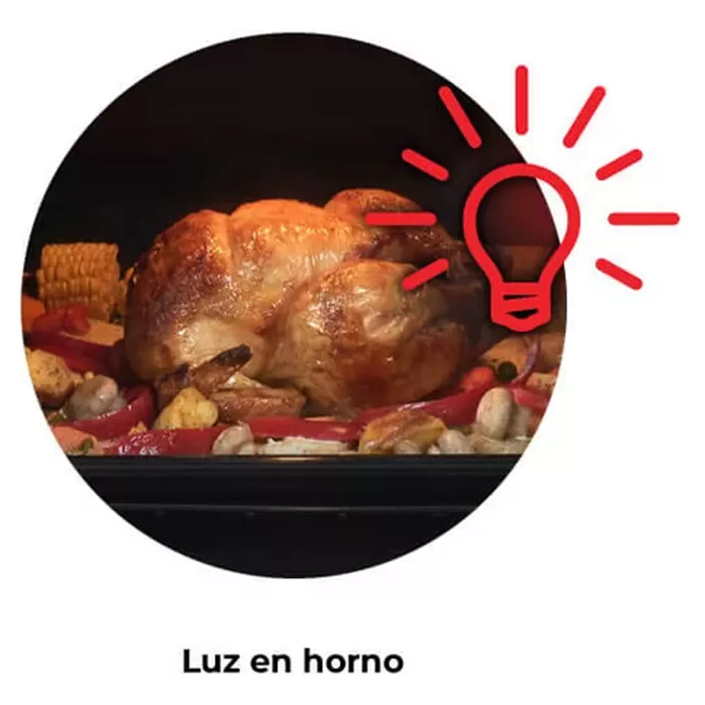 - Parrilla-Grill independiente: extraíble, con 3 posiciones y asadera.