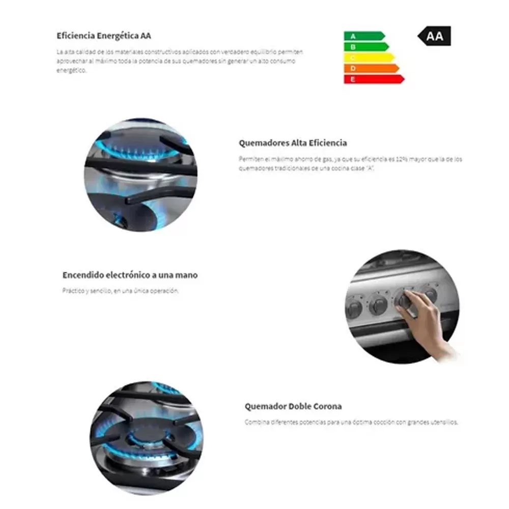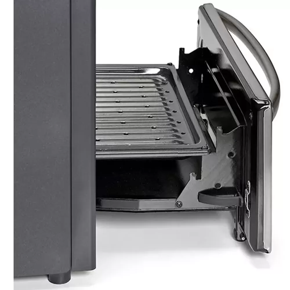 • Grafito con rejas de hierro fundido, quemador doble corona, grill eléctrico, timer, termostato y encendido electrónico a una mano.