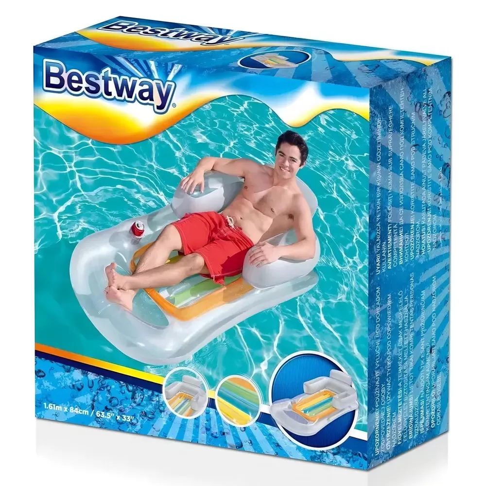 Colchoneta Inflable Sillón Respaldo Apoya Vaso Bestway 43028 Gris