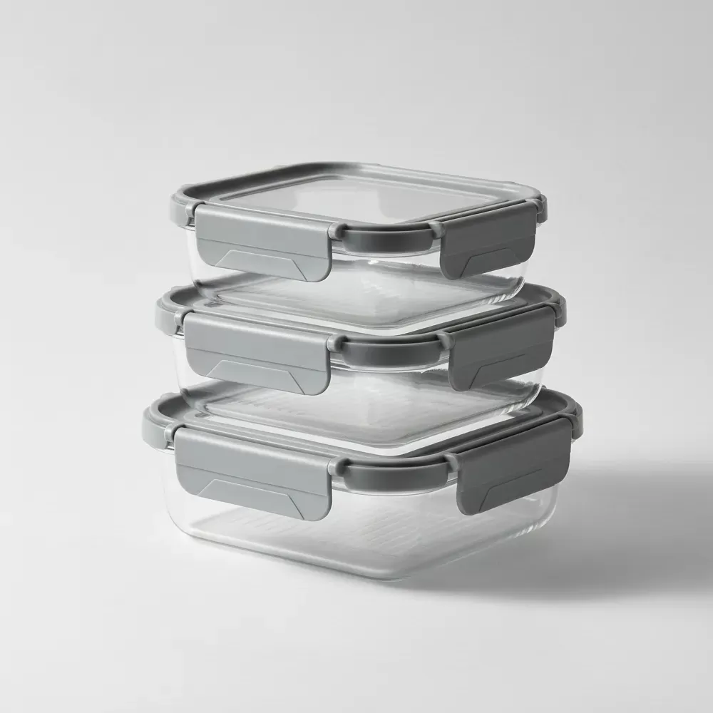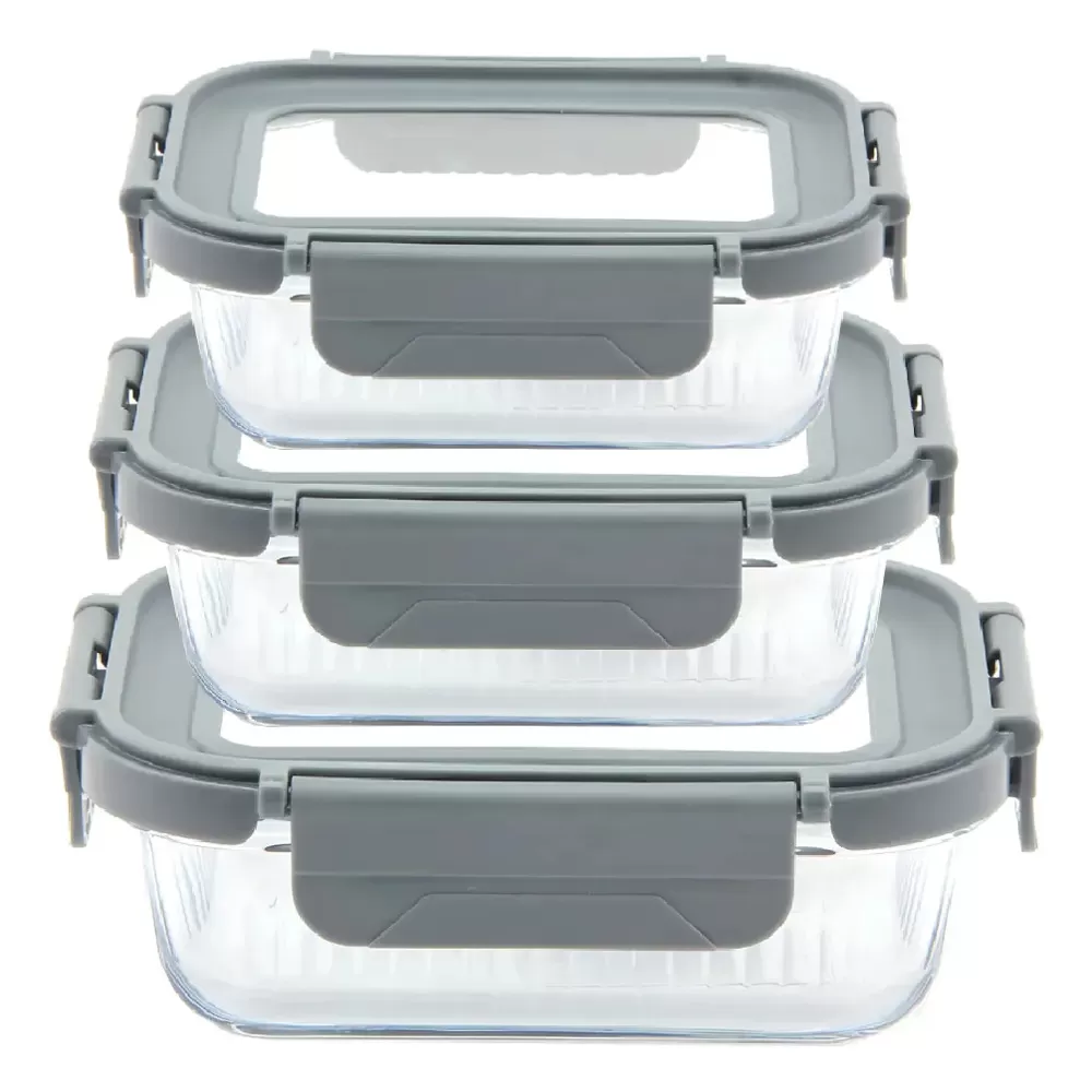Combo De 3 Tapers Contenedor De Vidrio Tapa Hermetica Carol Gris
