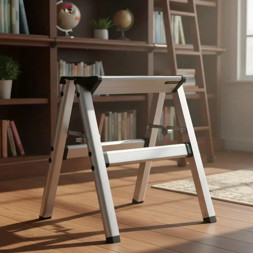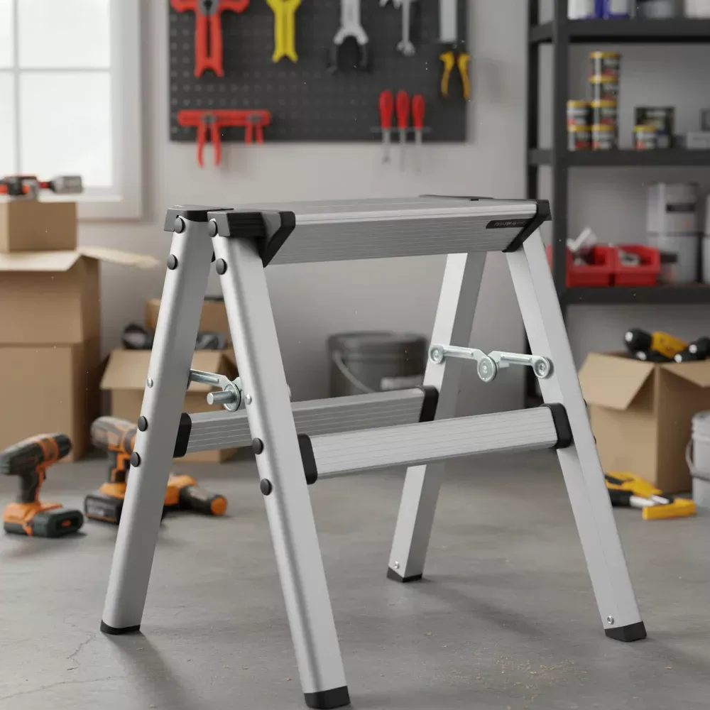 También llamado taburete, el banco escalera de aluminio destaca por su practicidad.