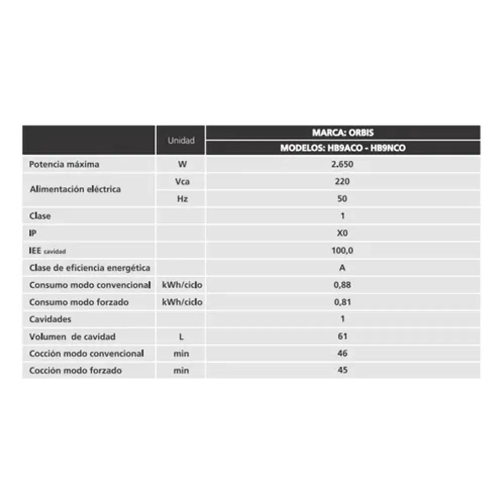 Horno Electrico De Empotrar Orbis Hb9aco 9 Funciones