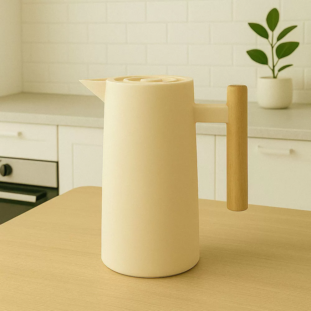 Jarra Termo Con Manija De Madera Pico Vertedor 1l Beige