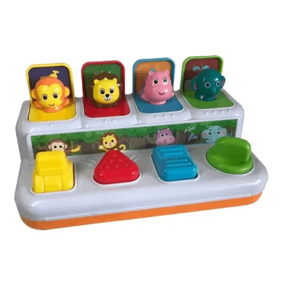 JUEGO INTERACTIVO MUSICAL POPPI. Modelo: WD3792 - PARAISO ANIMAL. Acompaña a tu bebé en un viaje de exploración y descubrimiento! Adorables animalitos aparecerán cuando presione o gire los botones. Permítale al bebé conocer diferentes formas, números y animales con hermosas melodías y haga que el bebé disfrute de la diversión que traen los juguetes Especificaciones: Con música y sonidos. Materiales resistentes de alta duración y libres de toxinas. Desarrolla la percepción. Desarrolla la motricidad y la creatividad. Medidas: Ancho: 29 CM. Prof: 16 CM. Altura: 9 CM. Funciona con 2 pilas AA. (incluidas).
