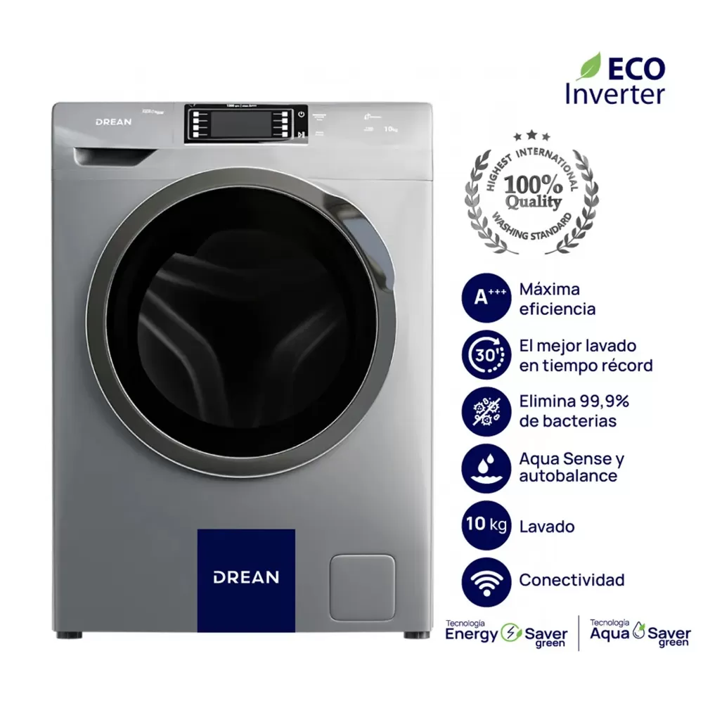 Lavarropas Carga Frontal Drean Lfdr1012tgo Gris Inverter 10k