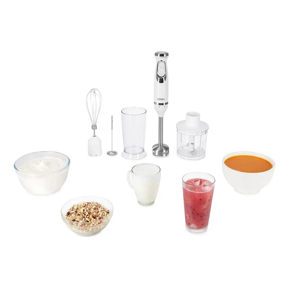 Licuadora De Mano Atma 600w Con Batidor, Espumador Y Chopper - Blanco