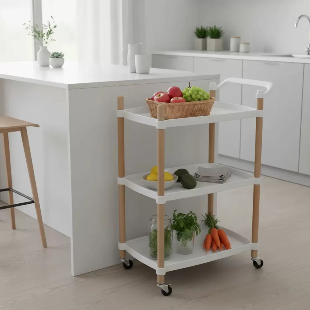 Carrito de 3 niveles de almacenamiento para una organización eficiente en la cocina.