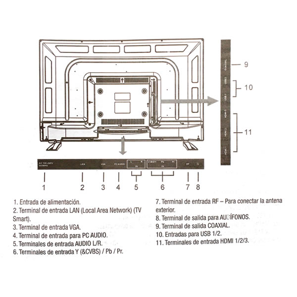 • Terminales de Entrada Y (cvbs)/Pb/Pr.