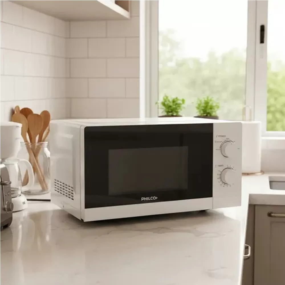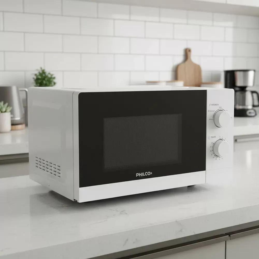 El Microondas Philco de 20 litros es la solución perfecta para quienes buscan funcionalidad y estética en su cocina. Con un elegante color blanco, este microondas no solo se integra a cualquier ambiente, sino que su diseño de mesa permite una fácil ubicación en espacios reducidos. Su profundidad de 26.3 cm y sus dimensiones compactas hacen que sea una opción ideal para departamentos y cocinas pequeñas.