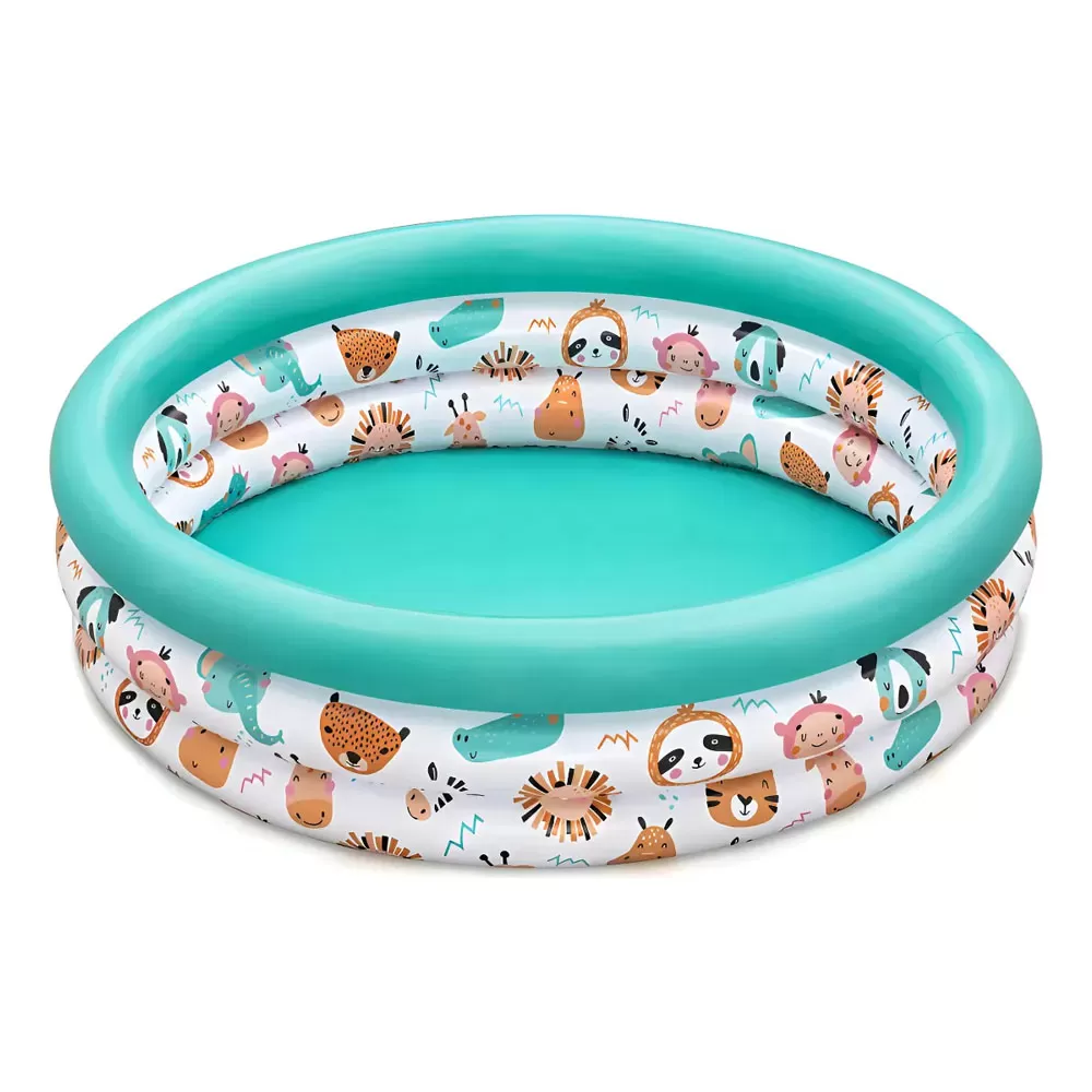 La pileta inflable redonda 3 aros Bestway 51008 es la opción ideal para que los más pequeños disfruten del agua de manera segura y divertida. Con un diseño colorido y atractivo, esta pileta de la línea Safari Pals está pensada para niños de 2 a 4 años, ofreciendo un espacio refrescante y seguro para jugar.