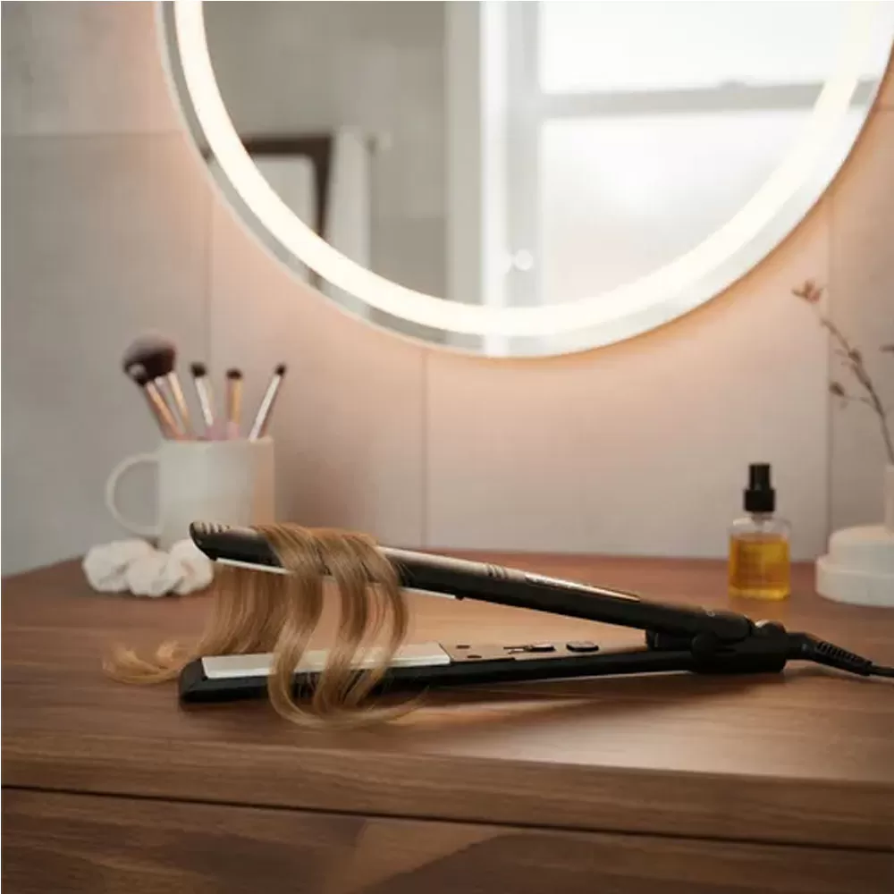 La pantalla LED permite un monitoreo fácil de la temperatura seleccionada, asegurando resultados deslumbrantes en cada ocasión, ya sea que elijas un look liso y elegante o un suave rizado.