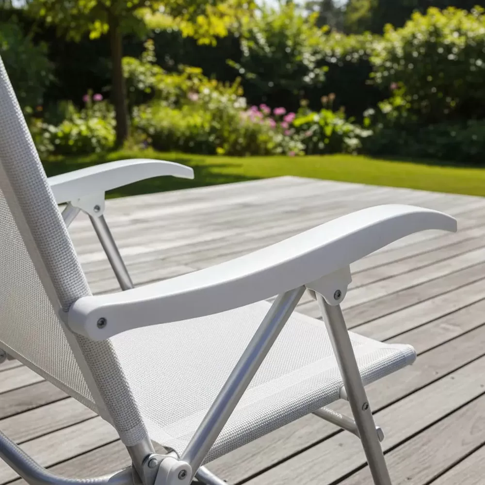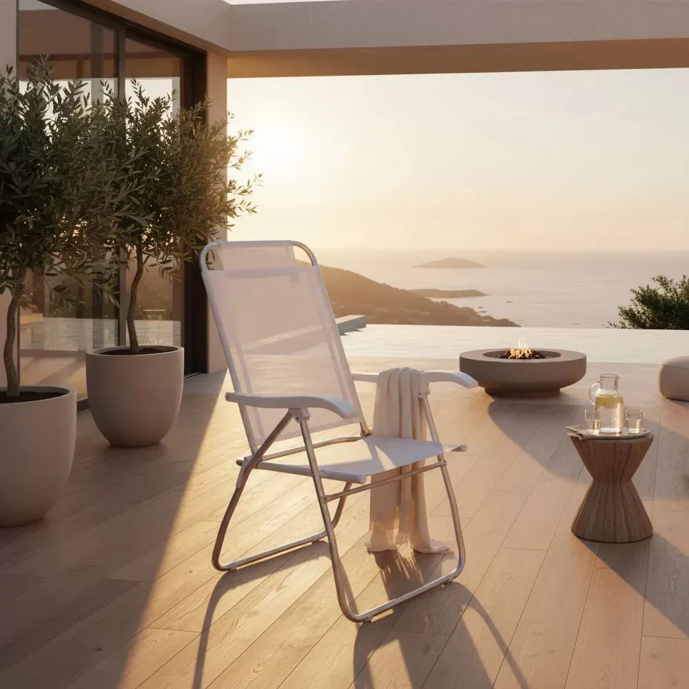 Con un asiento más amplio y un respaldo reclinable en hasta cuatro posiciones, la Silla Prosa ofrece el soporte perfecto para que disfrutes del día como prefieras. Su tela 100% poliéster con revestimiento de PVC y su estructura de aluminio le brindan resistencia y ligereza, lo que la hace ideal para entornos expuestos al sol, la lluvia y el aire salado.