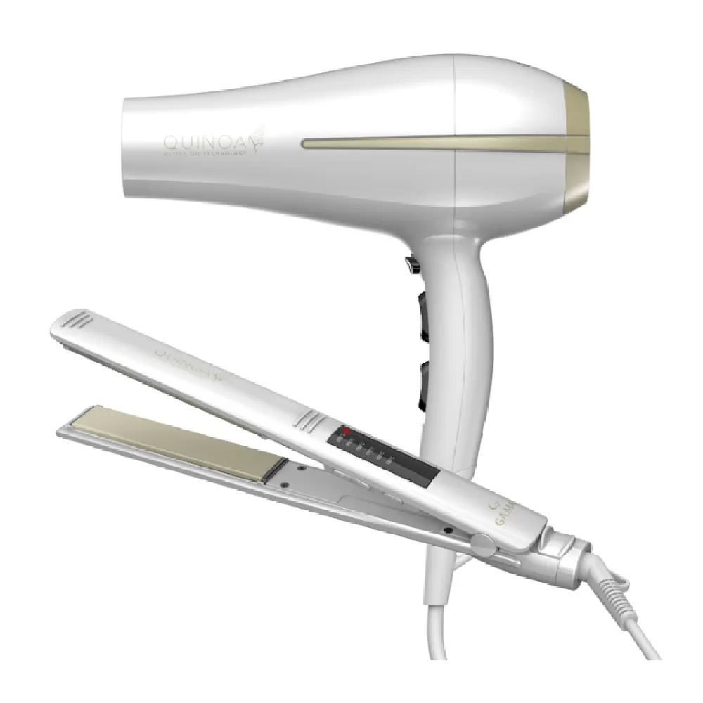 Secador De Pelo Ga.ma Bora + Planchita Elegance Led Quinoa Blanco