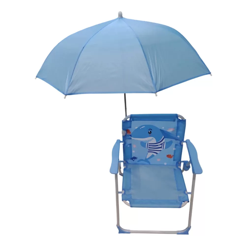 Silla Reposera Niños Sombrilla Plegable Celeste De 1 A 3años