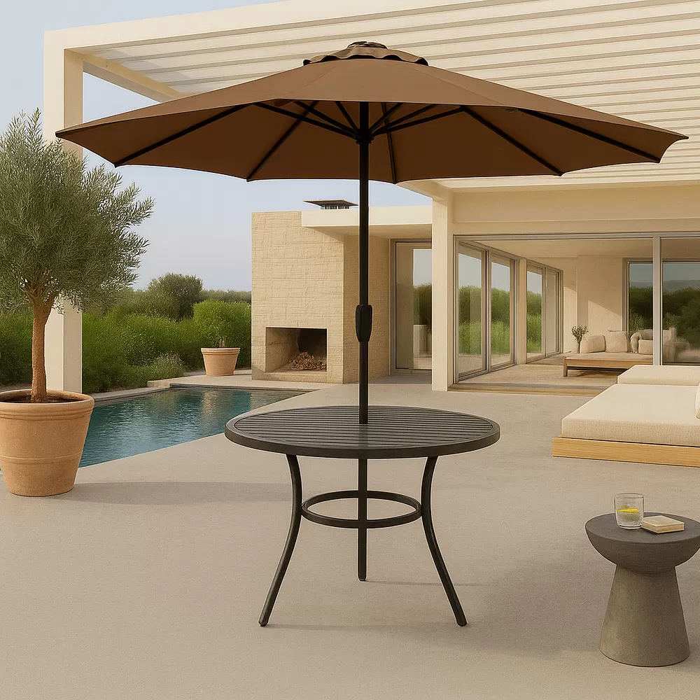 Sombrilla Central Playa Jardin De 2,7m Con Manivela Marrón