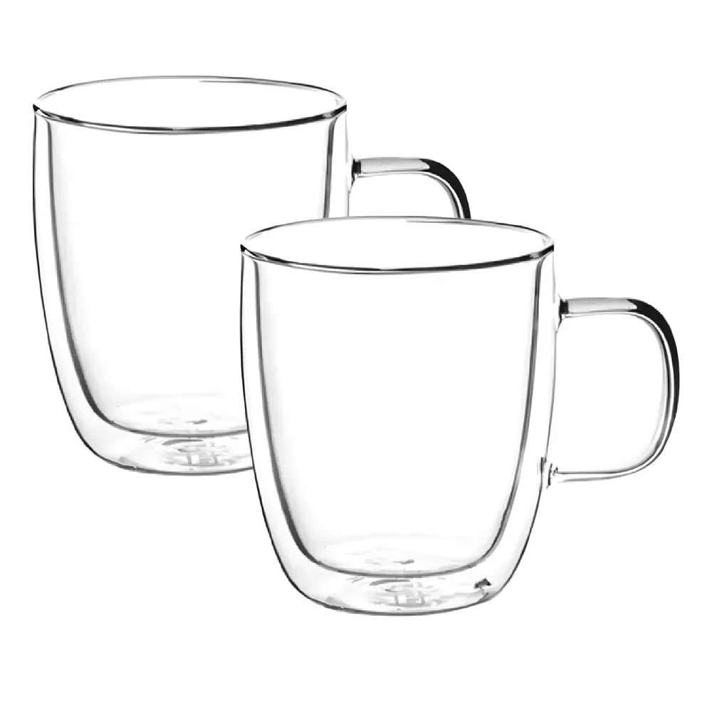Taza Vidrio Café Doble Pared Con Asa 2 Unidades Carol 350cc Vidrio Doble Asa