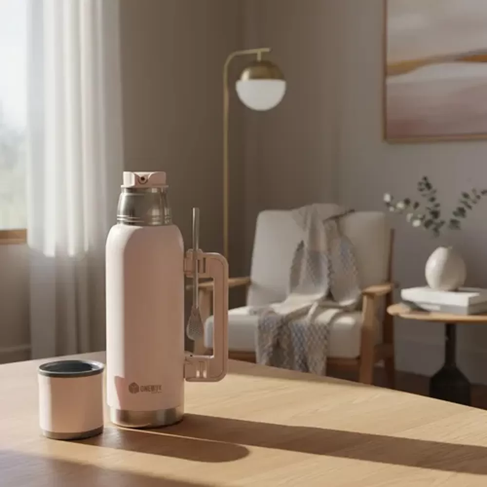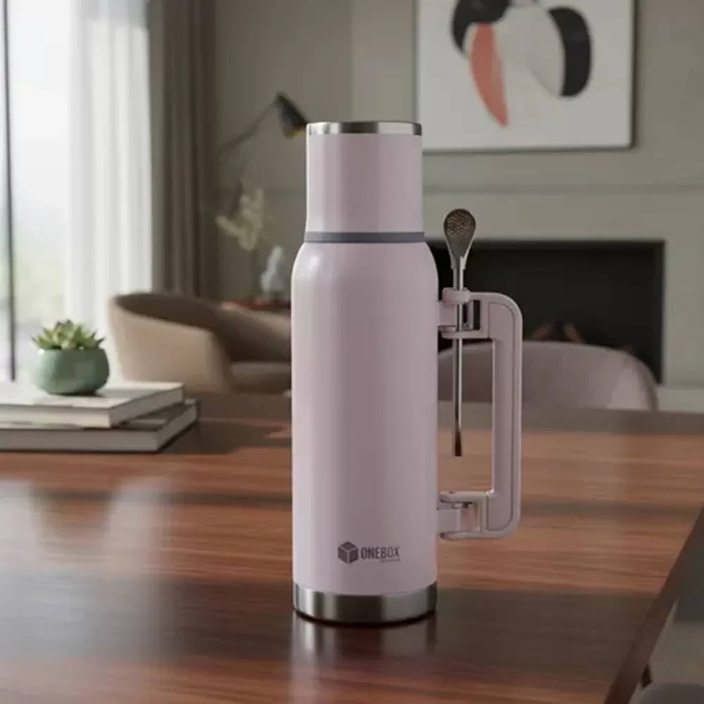 El termo Onebox OB-T10 Set matero Pink White es la opción perfecta para disfrutar de un ritual de mate auténtico en cualquier lugar.