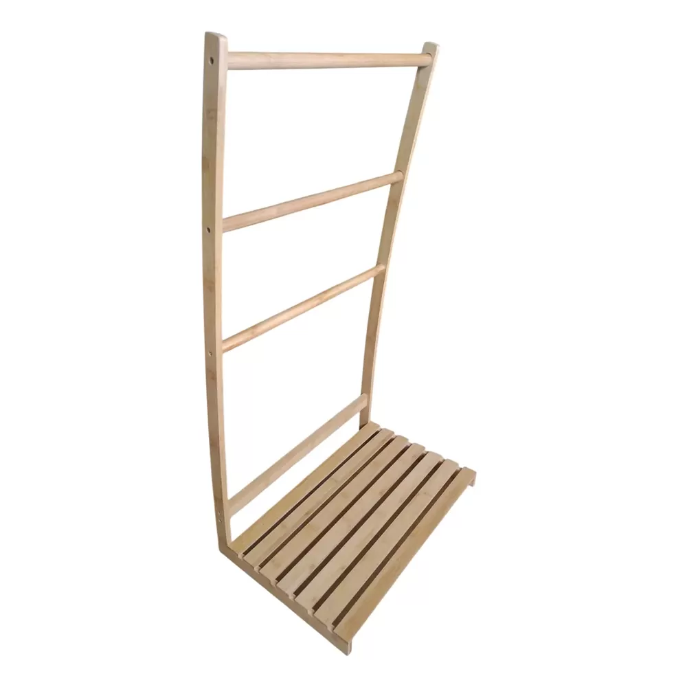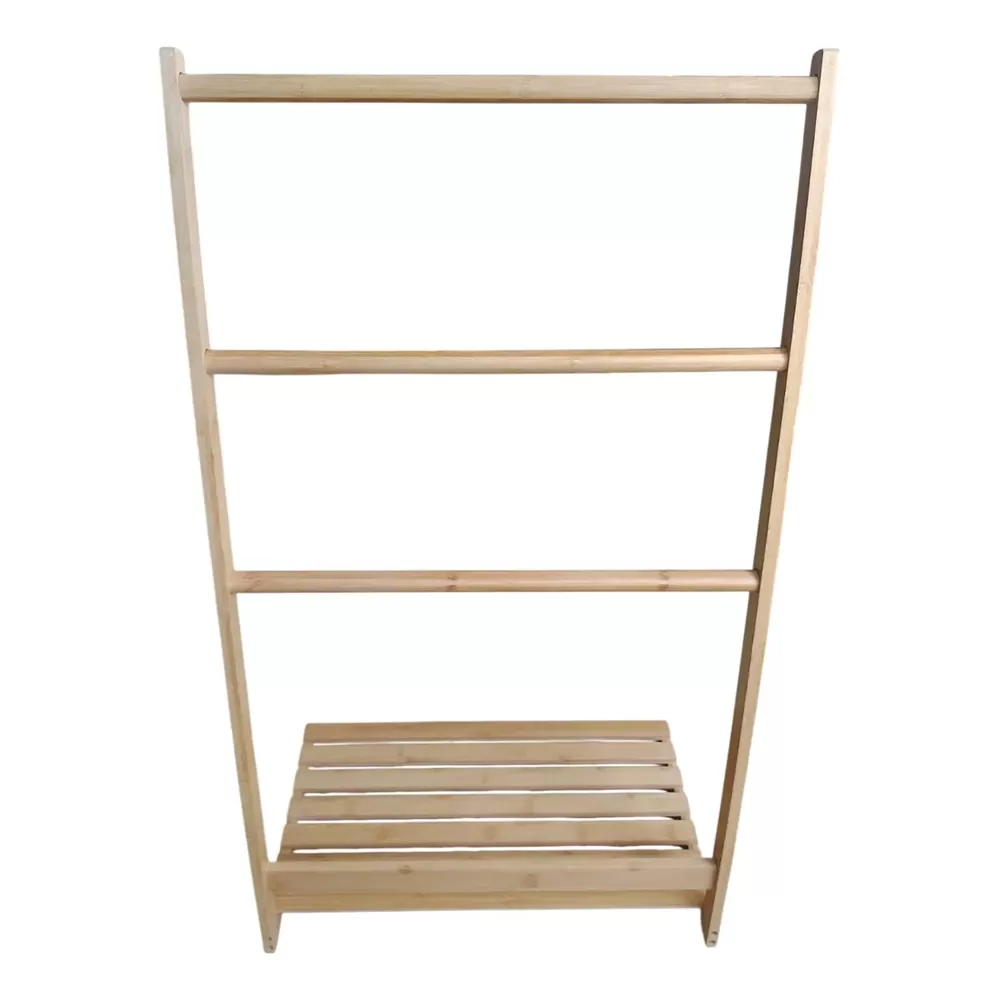Toallero De Pie Para Baño 3 Cilindros Madera Altura 90cm Marrón Claro