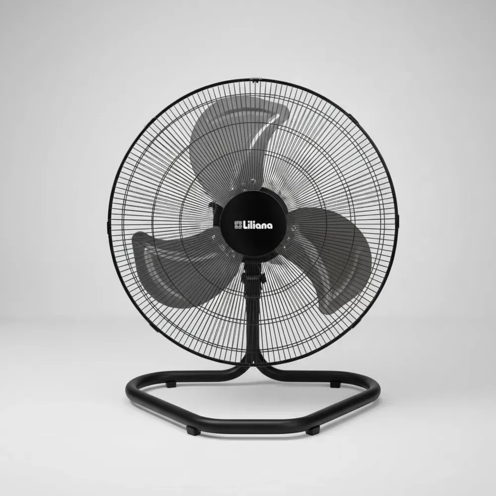 Diámetro: 20 Pulgadas. Cabezal Oscilante y reclinable. Parrilla metálica negra. 3 aspas metálicas tipo Trébol. Base metálica antideslizante. Gran caudal de aire. Motor con doble rodamiento. 3 velocidades.