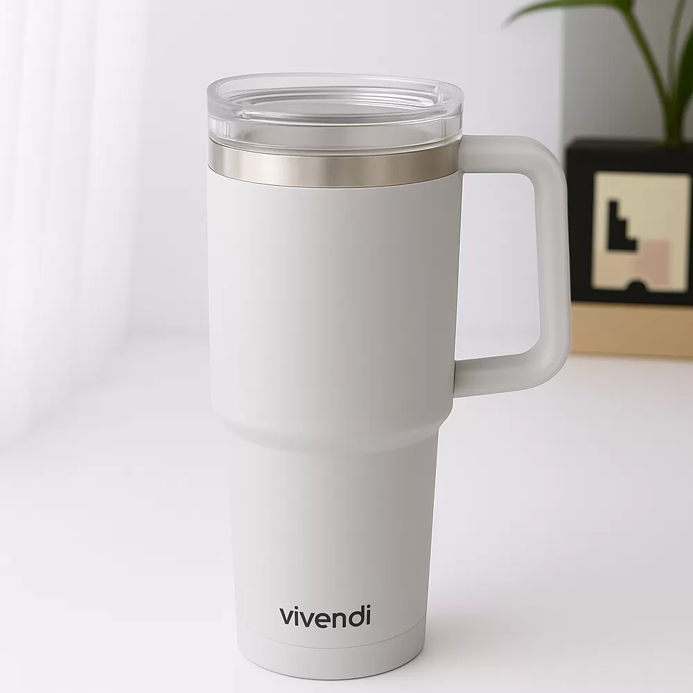 Vaso Térmico Acero Inox Vivendi Blanco De 1200 Ml C/sorbete Lisa