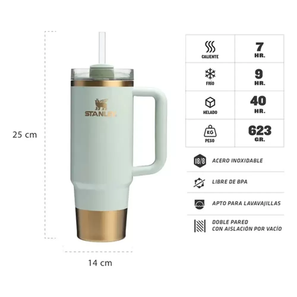 Vaso Térmico Stanley Quencher Verde C/dorado 887ml Libre Bpa