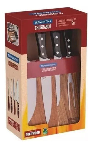 Juego para Asado Tramontina Polywood con Láminas de Acero Inoxidable y Mangos de Madera Marrón 5 Pzas.