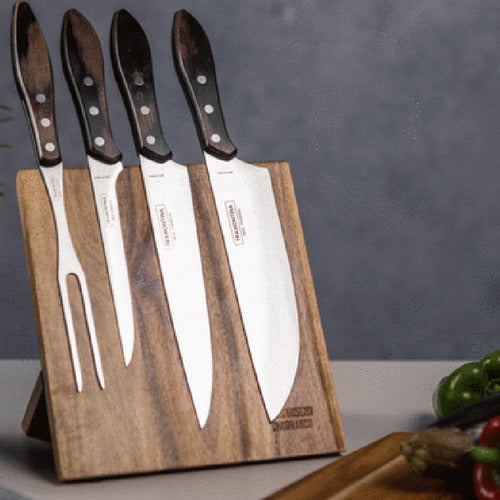 Prepara tus mejores asados con más estilo y practicidad con el Juego para Asado Tramontina con Láminas de Acero Inoxidable y Mangos de Madera Polywood Marrón de 5 Piezas.