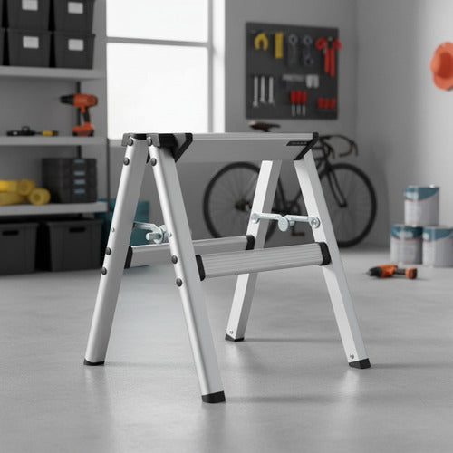 También llamado taburete, el banco escalera de aluminio destaca por su practicidad.