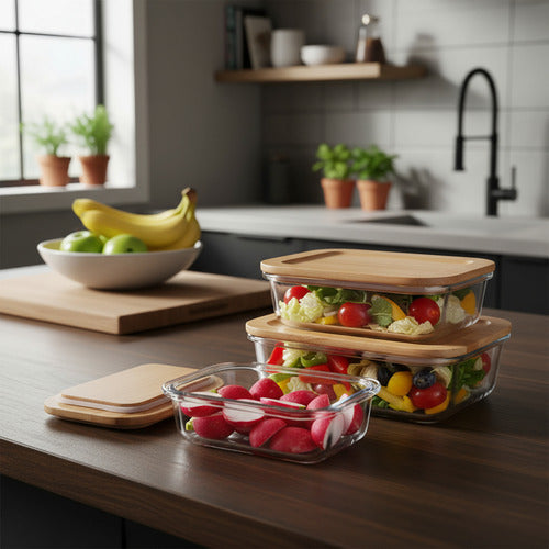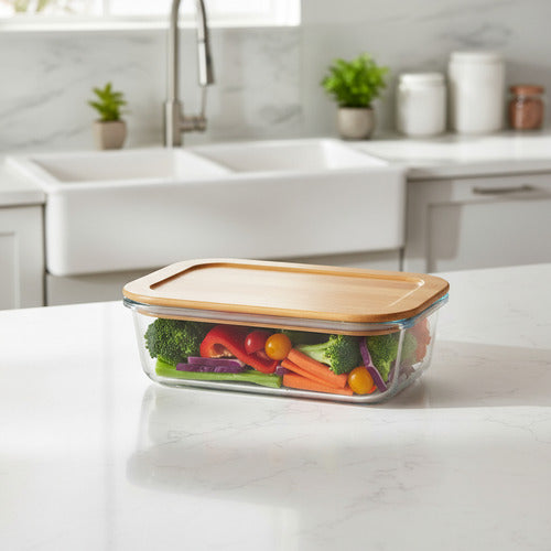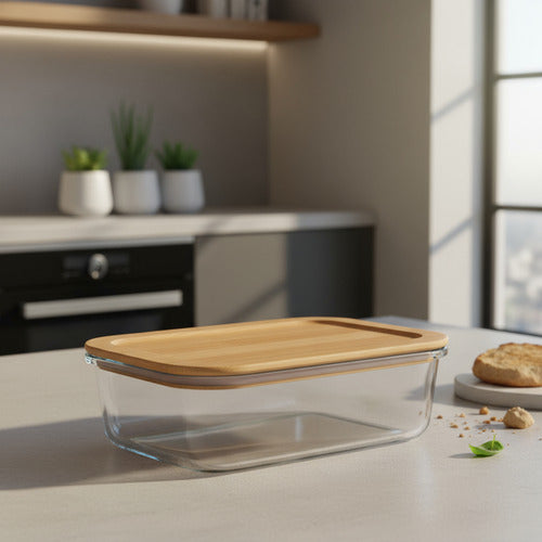 Material de Vidrio y tapa de bambu.