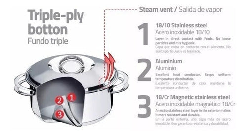 La ventaja más destacable del acero inoxidable, es que reúne beneficios de los otros materiales, como la gran durabilidad y la capacidad de soportar calor extremo. Al mismo tiempo, como su nombre lo indica, es inoxidable, por lo que resiste la corrosión por óxido o ácidos. De esta manera, tendrás la seguridad de que durante la cocción sus materiales no desprenderán ningún tóxico que pueda poner en riesgo la salud.