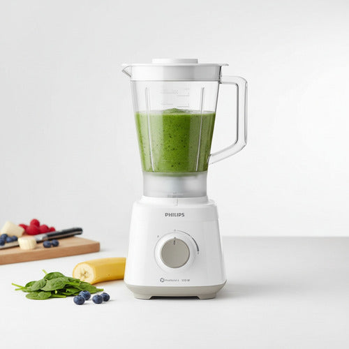 Disfruta de deliciosos batidos, smoothies y sopas con la Licuadora Philips Daily Collection HR2129. Esta licuadora de 2 litros de capacidad es perfecta para preparar tus recetas favoritas en grandes cantidades, ideal para compartir con familia y amigos. Su potente motor de 550W y sus dos velocidades te permiten mezclar y triturar fácilmente todo tipo de ingredientes, desde frutas y verduras hasta hielo, gracias a su función apta para picar hielo. Además, sus 4 cuchillas garantizan una mezcla homogénea y rápida. La jarra de plástico es libre de BPA, lo que asegura que tus preparaciones sean seguras y saludables para ti y tu familia. Aunque no cuenta con cuchilla de acero inoxidable, su diseño y materiales garantizan una larga vida útil y un rendimiento óptimo. No esperes más para disfrutar de la versatilidad y comodidad que la Licuadora Philips Daily Collection HR2129 puede ofrecerte en tu cocina.