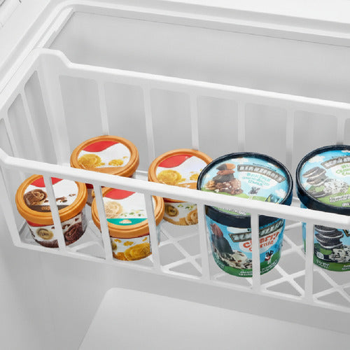 Este freezer compacto y moderno en color blanco no solo luce increíble, sino que exhibe detalles que hacen la diferencia: experiencia simple y práctica con su cerradura con llave para mayor seguridad. Además, la luz LED interior te permite visualizar todo el contenido sin esfuerzo, incluso en la noche. Sumá a eso su tapón de drenado y decile adiós al engorroso proceso de descongelar.