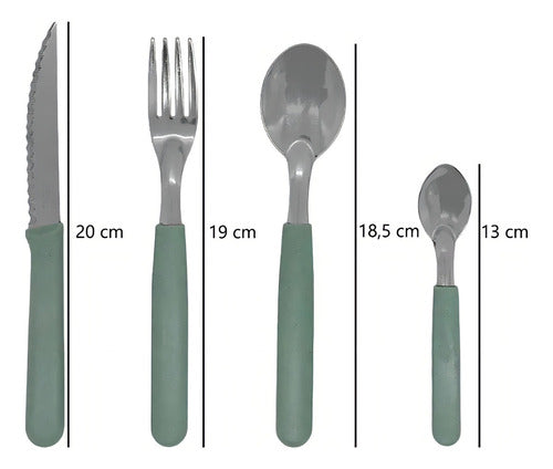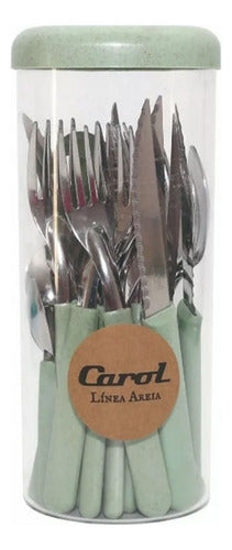 Set de 24 cubiertos Carol con mangos de plástico PVC de color y hojas de acero inoxidable de alta calidad y durabilidad. Incluye: