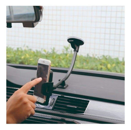 Mantené tu celular al alcance mientras conducís con este soporte universal para vidrio o al tablero del auto, también cuenta con clip.