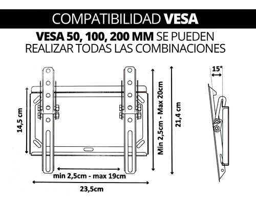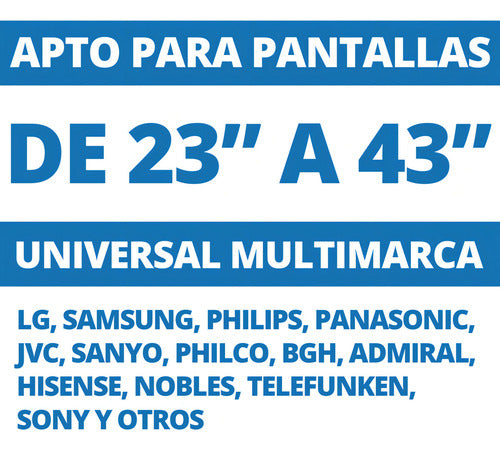 Descubre el Soporte con Inclinación de 23" a 43" Nakan SPL 292i, la solución ideal para optimizar tu espacio y disfrutar de tus programas favoritos con la mejor comodidad. Este soporte extra slim es perfecto para pantallas de hasta 43 pulgadas y soporta un peso máximo de 35 kg, garantizando la seguridad de tu televisor. Su diseño fijo y su inclinación de 15° permiten ajustar la visualización a tu gusto, evitando reflejos y mejorando la experiencia visual. Además, incluye un completo kit de fijación para una instalación sencilla y rápida en la pared. Este modelo, fabricado en Argentina, es compatible con pantallas gamer, asegurando que cada partida sea épica. No te pierdas la oportunidad de modernizar tu hogar con este soporte funcional y elegante.