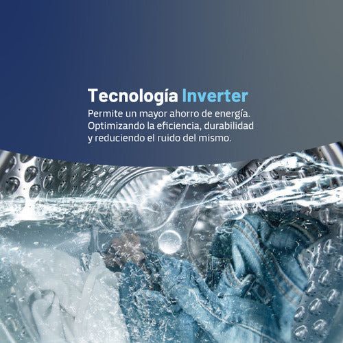 Este lavarropas cuenta con tecnología Inverter, que optimiza la eficiencia energética y reduce el ruido, proporcionando durabilidad y ahorro en comparación con un lavarropas tradicional.