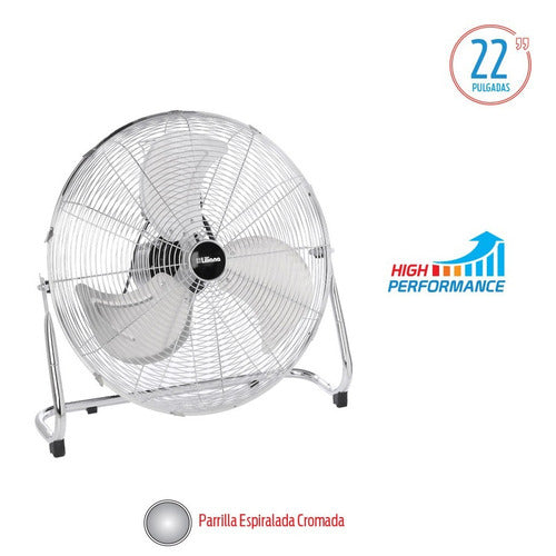 Este ventilador de 22" de diámetro cuenta con 3 palas de metal que garantizan un flujo de aire potente y eficiente.