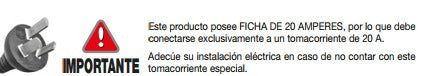 • Fuente de alimentación 220 V ~ 50 Hz.